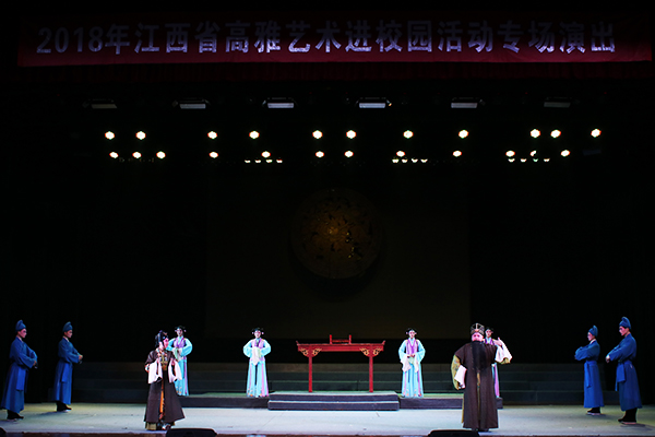 10月20日晚,2018年江西省高雅艺术进校园活动专场演出赣剧《红珠记》在我校音乐厅隆重上演,在家校领导与1000多名师生观看了演出。