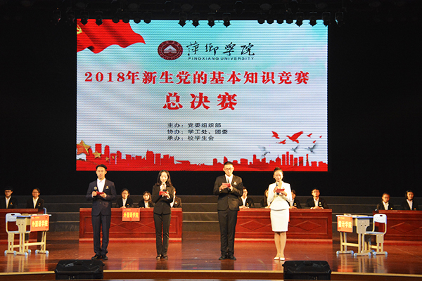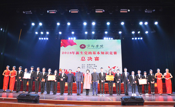为深入学习贯彻习近平新时代中国特色社会主义思想和党的十九大精神,贯彻落实全国和全省高校思想政治工作会议精神,扎实推进高校“两学一做”学习教育常态化制度化,引导广大青年学生坚定共产主义远大理想和中国特色社会主义共同理想,听党话跟党走。11月21日晚,我校2018年新生“不忘初心、牢记使命”党的基本知识竞赛总决赛在音乐厅举行。本次竞赛由党委组织部主办,学工处、校团委协办,校学生会承办。校党委委员、组织部部长陈永秀、校团委书记刘德平、组织部副部长王林清以及各二级学院党总支副书记出席,各二级学院学生代表共计1000多人观看了比赛。