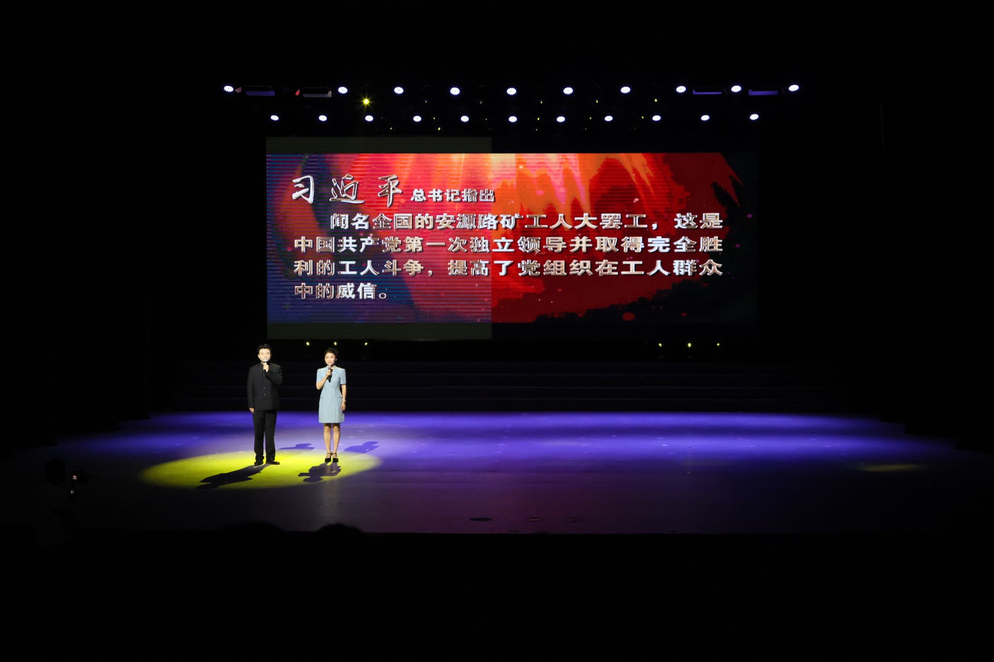 全国红色旅游五好讲解员、安源路矿工人运动纪念馆宣传教育科科长段志能,萍乡市春雨艺术团副团长冯丹带来了沉浸式红色思政课《红色安源 初心启航》。他们的声情并茂讲述,带领现场观众回顾了安源工人运动的辉煌历史,展现了安源精神在新时代的传承与发扬。