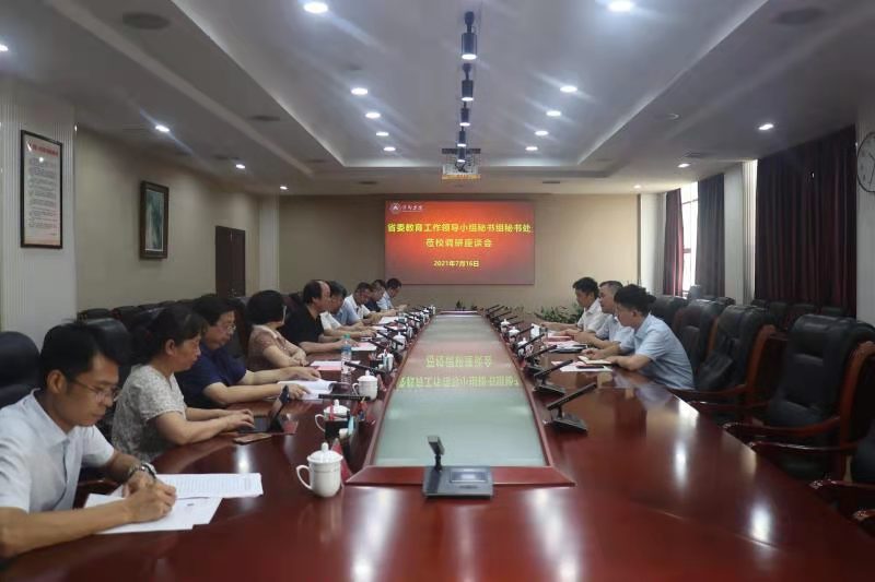 7月16日,省委教育工作领导小组秘书组秘书处杨联愚一行莅临学校调研指导并召开座谈会。校党委书记陈金印,党委委员、副校长郭伟,党委委员、组织部部长陈永秀出席座谈会。组织部、宣传部、党政办、学工处、团委、教务处、马克思主义学院等单位负责同志参加座谈会。座谈会由陈金印主持。