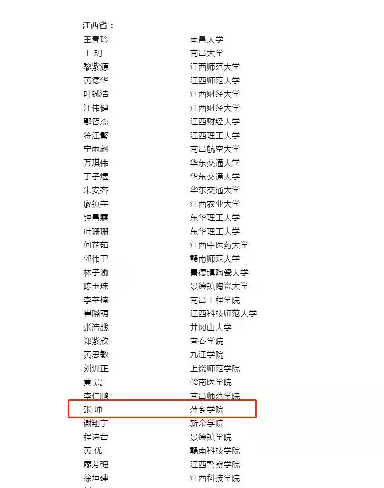 在省级评审阶段,材料与化学工程学院19无机非金属材料工程1班王添毅同学获评2021年度“江西省大学生自强之星”荣誉称号。