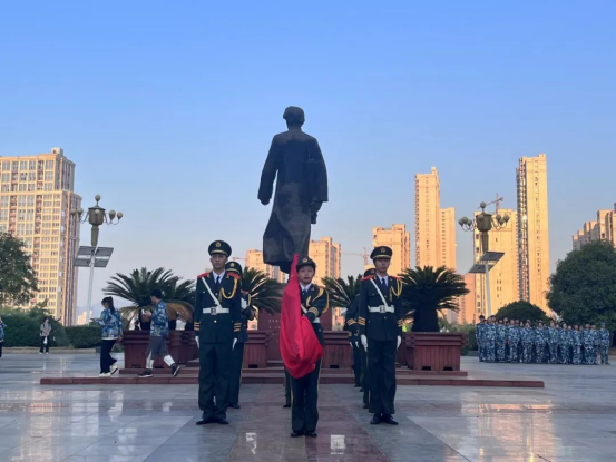 盛世华诞,举国同庆。10月1日,我校在毛泽东铜像广场前举行升旗仪式。各二级学院学生代表以及部分校团委学生干部参加升旗仪式。
