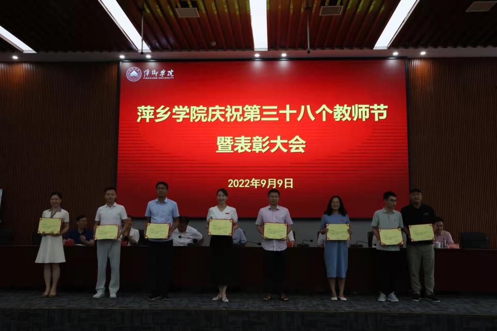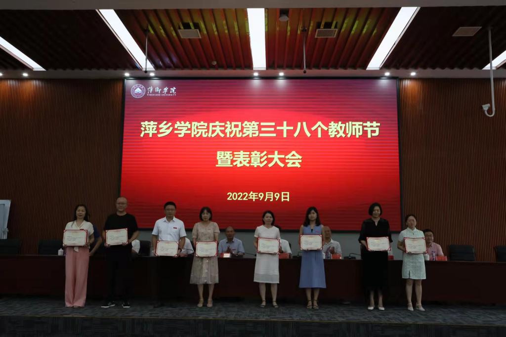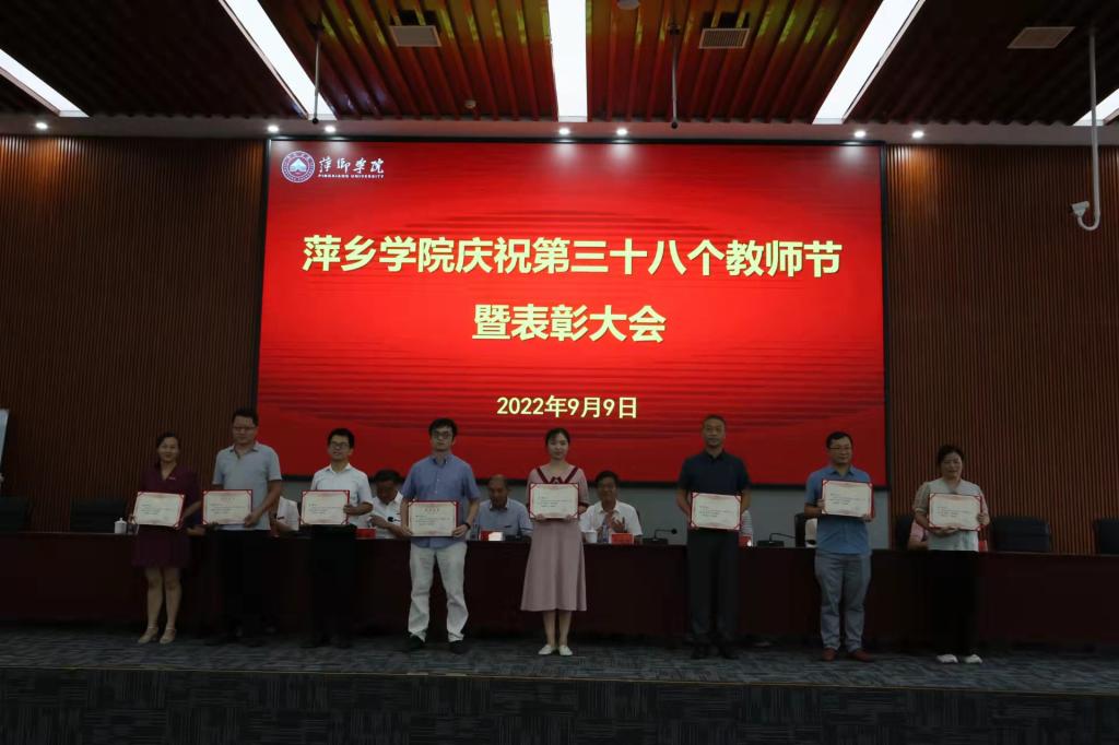 会议在庄严的国歌声中正式拉开了序幕。校党委副书记邱晓辉宣读《关于对朱红英等同志颁发长期从教荣誉证书的决定》和《中共萍乡学院委员会关于表彰2022年优秀教师和优秀教育工作者的决定》。全体校领导为受表彰教师颁奖。