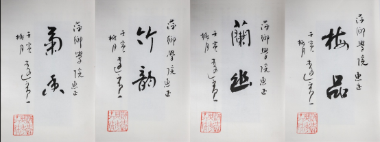 “梅兰竹菊”四君子,千百年来以其清雅淡泊的品质,一直为世人所钟爱,成为一种人格品性的文化象征。先生在每册赠书扉页上分别题字“梅品”“兰幽”“竹韵”“菊香”,通过四君子所蕴含的人格力量、道德情操和文化内涵,对萍乡学院的内涵发展寄托着殷殷期望,赠书具有极高的收藏价值。