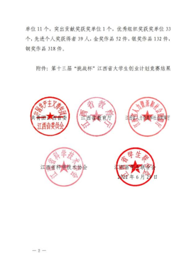 近日,第十三届“挑战杯”江西省大学生创业计划竞赛活动圆满落下了帷幕,我校再获佳绩。在此次比赛中,我校选送8项作品进入挑战杯省级复赛,其中,6项作品获奖,《红色名村的传承者——行走在赣西革命老区的青年力量》《固废循环科技——新一代海绵城市透水材料攀登者》《塑烯科技——顾废塑料绿色资源化行业的领导者》等3项作品荣获省级银奖,《风驰电掣——新一代高压电网绝缘材料先行者》《万瓷长清——陶瓷超双疏改性技术》《傩秀——新时代傩文化传承者》等3项作品荣获省级铜奖,取得历史最好成绩。学校荣获优秀组织奖。校团委熊云杰老师获先进个人奖。