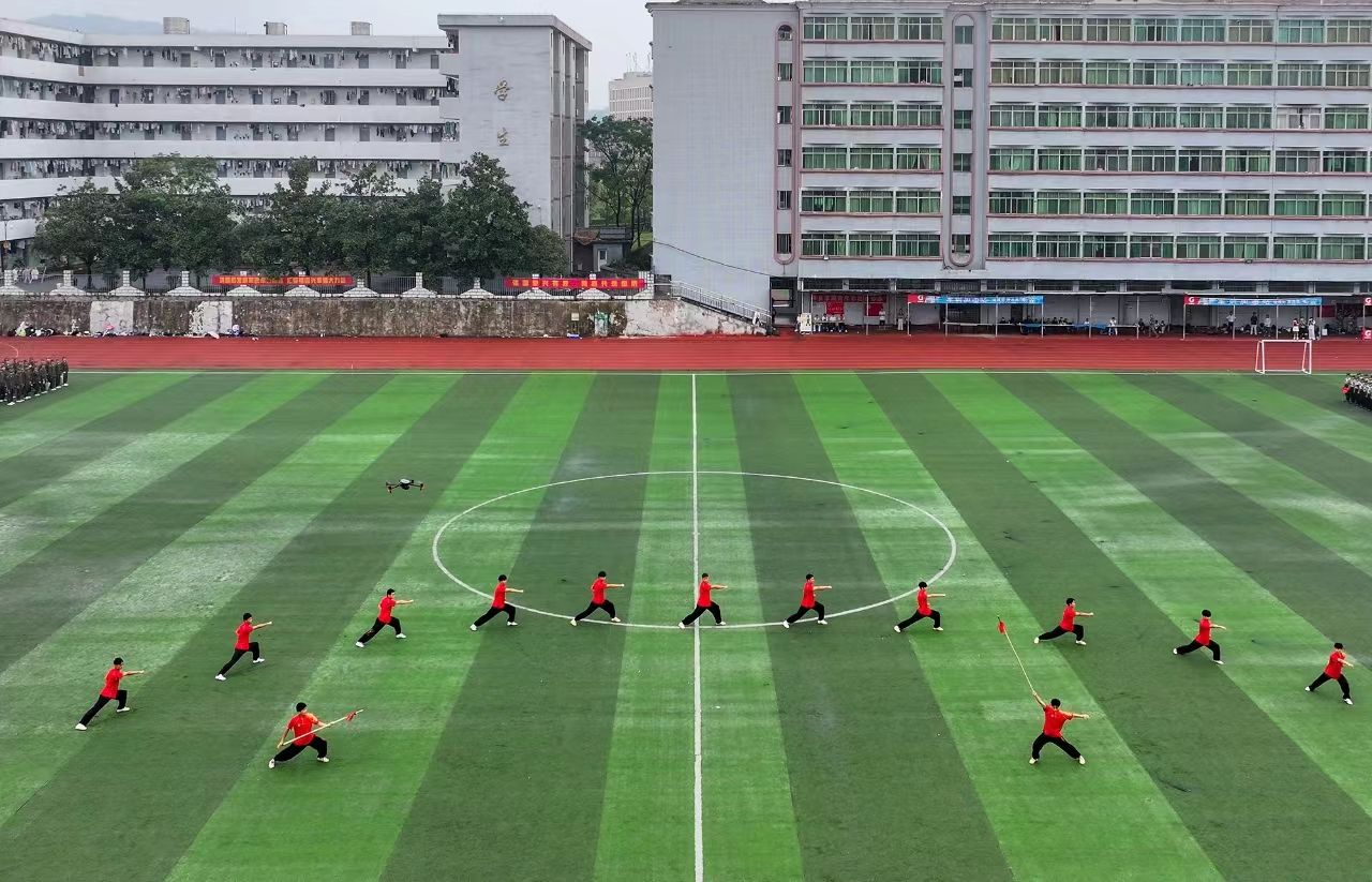 启动仪式上,我校共220名学生依次开展搏击操、武术、跆拳道演练;萍乡市师范学校附属小学邓安琪作了以《赓续红色血脉 共筑强大国防》为题的演讲;我校德铭护校队进行了旗语操表演;芦溪县人武部作了军体拳展示;我校德铭护校队作了军事演练展示;我校艺术学院进行了《强军战歌》表演。