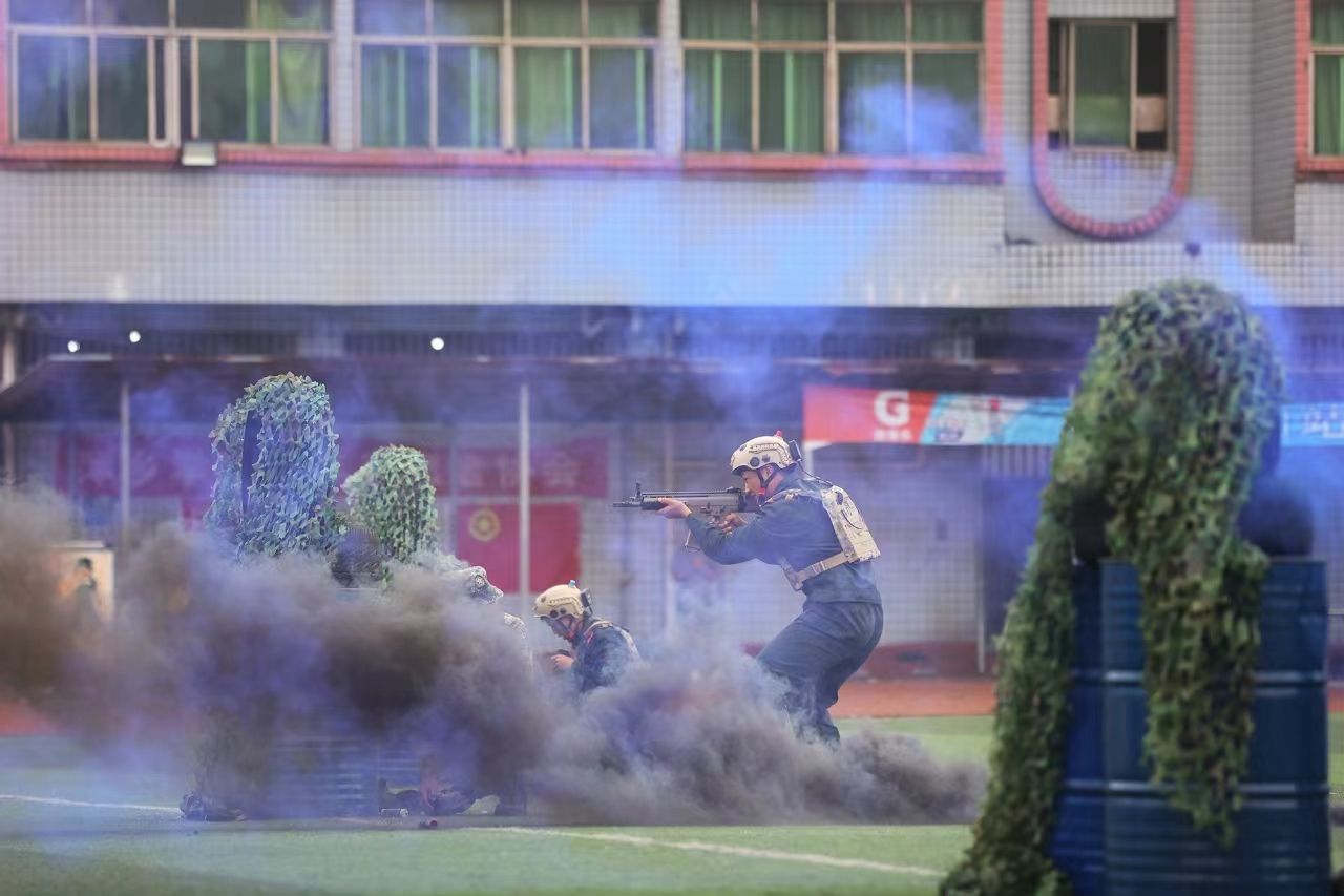 邱晓辉为活动致辞。他指出,国无防不立,民无防不安。国防是关系到国家和民族生死存亡的根本大计,国防教育是建设和巩固国防的基础,是增强民族凝聚力、提高全民素质的重要途径,事关长远、事关全局。学校坚持以习近平新时代中国特色社会主义思想为指导,深入学习贯彻习近平总书记关于总体国家安全观的重要论述精神,认真贯彻落实党中央关于全民国防教育的决策部署,始终将国防教育作为学校落实立德树人任务的重要组成部分,坚持以爱国主义教育为主线,切实加强组织领导,压紧压实责任,加大宣传报道,结合学校实际开展了形式多样、内容丰富的教育活动,全面提升师生的国防观念和国家安全意识。