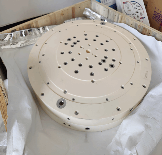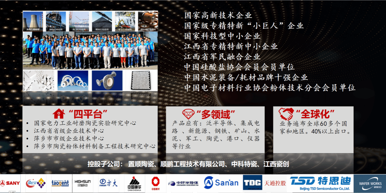 高性能材料是先进信息技术的基石,是国外对我国重点打压和技术封锁的领域。精密陶瓷部件是整个泛半导体制造产业的基础,其中,本次参赛项目涉及的大尺寸陶瓷是关键卡脖子部件,大部分产品都依赖进口。目前,半导体领域用陶瓷产品和技术主要由日本、美国和韩国控制,例如日本 Kyocera(京瓷)、ASUZAC、Sinto 等公司,具备生产各种大尺寸结构陶瓷部件的能力。国产大尺寸氧化铝等陶瓷部件普遍存在强度低、抗热震性差、容易掉渣等问题,只能在蓝宝石等要求较低的产业应用,尚无法在半导体芯片制造装备中应用。针对这些问题,顺鹏新材利用自身产业优势,开展了自发凝固成型新技术在高性能陶瓷制备方面实用化技术的研究。突破了从粉体到陶瓷的一系列瓶颈难题,成功制备出大尺寸高性能氧化铝陶瓷材料。相比于国内现有成型技术制备的大尺寸氧化铝陶瓷,自发凝固成型制备的陶瓷部件具有明显的性能提升。经丁文江、张联盟和谢毅等多位院士,以及三安光电为代表的多家头部企业综合评价,项目产品达到了国际先进水平,成为实现替代进口材料的最佳选择。