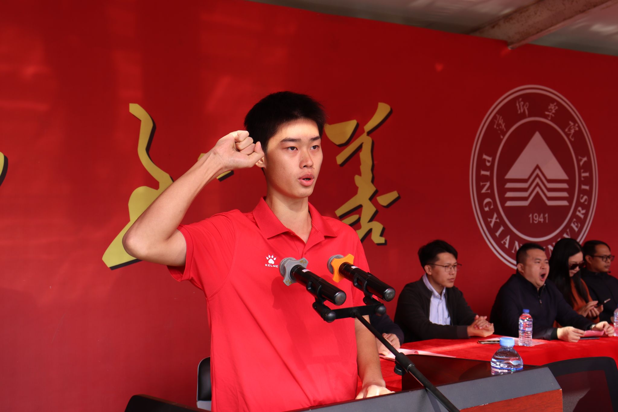 伴随着青春激昂的《运动员进行曲》,国旗、校旗、会旗、鼓号队、民兵护校队、裁判员队、教师代表队陆续进场。十一个二级学院代表方阵依次入场,他们面带笑容,青春洋溢,尽显萍院学子风采。