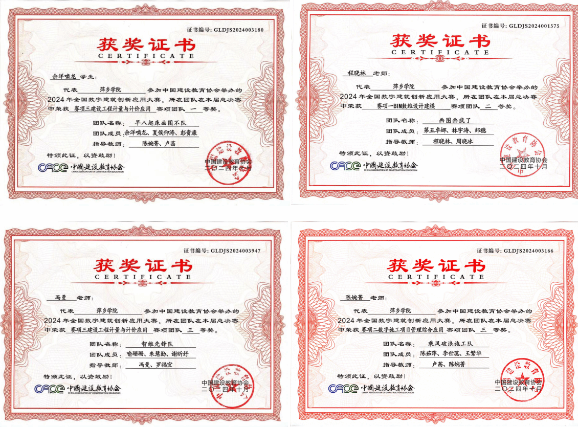近日,由中国建设教育协会主办的全国数字建筑创新应用大赛总决赛圆满落幕。本届大赛包括“BIM数维设计建模赛项”、“数字施工项目管理综合应用赛项”和“建设工程计量与计价应用赛项”三个赛项,吸引了来自全国430余所院校的2800余支队伍报名参加。我校工程与管理学院刘芷健、余洋啸龙、喻珊珊、陈茹萍、第五卓娜等15名学生在卢茜、周晓冰、陈婉菁等7位指导老师的指导下,共获一等奖1项(全国排名第5),二等奖1项,三等奖3项,获得我校在该赛事的重大突破。