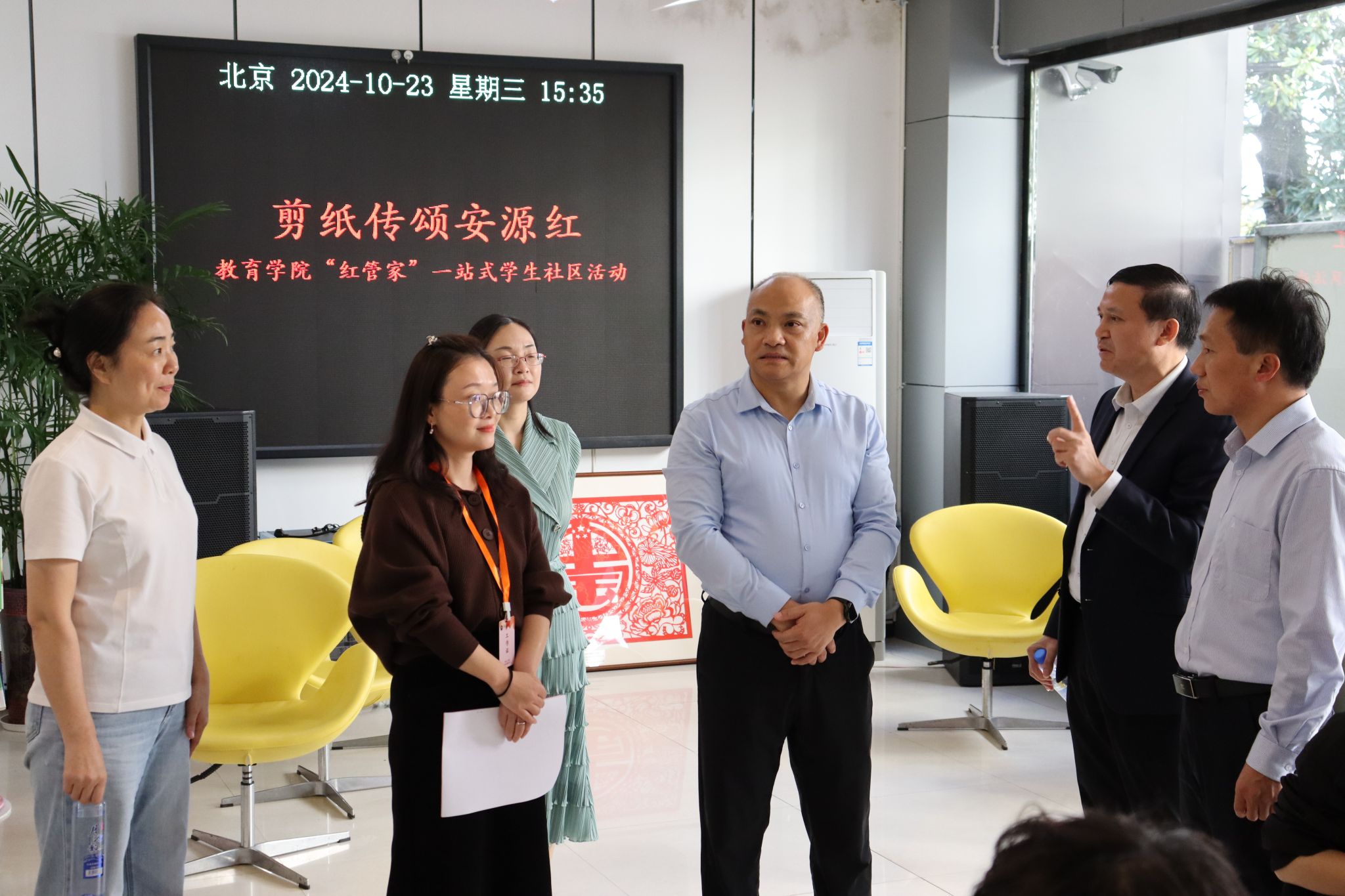 王宣海一行先后来到毛主席铜像广场、安源红色文化育人展览馆、大学生心理健康教育与咨询中心、美术馆、海怀民乐团、“红管家”一站式学生社区综合服务中心,深入考察调研学校红色资源的开发与利用。王宣海对学校立足安源红色文化、深入推进“365”安源红色文化育人体系建设给予充分肯定。他希望学校继续充分利用好红色文化资源优势,打造思政品牌,培育时代新人;持之以恒抓好学生心理健康教育,推动心理健康教育的特色化、品牌化发展,促进学校心理健康教育工作高质量发展;扎实抓好一站式学生社区建设,为学生提供更优质的服务和保障,努力营造安心舒适的学习生活环境。