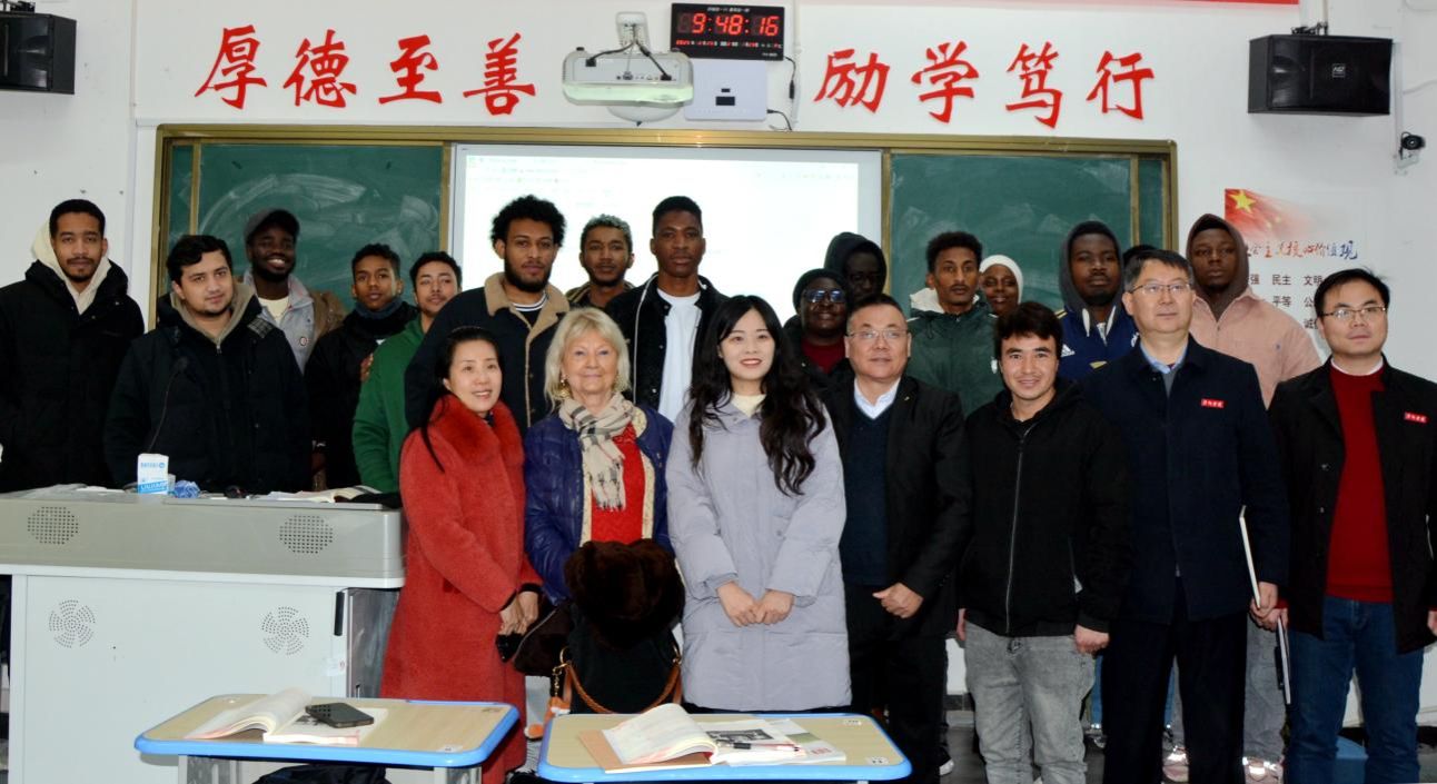 代表团一行首先参观了外国语学院,仔细了解了学院的教学设施,观摩了课堂教学情况,对学院在国际化课程设置、语言实践教学等方面的成果给予高度评价。随后,法方代表团来到留学生教室,与在校留学生们进行了亲切交流,双方围绕留学生们感兴趣的法国文化、教育资源等话题进行互动,现场气氛轻松而热烈。
