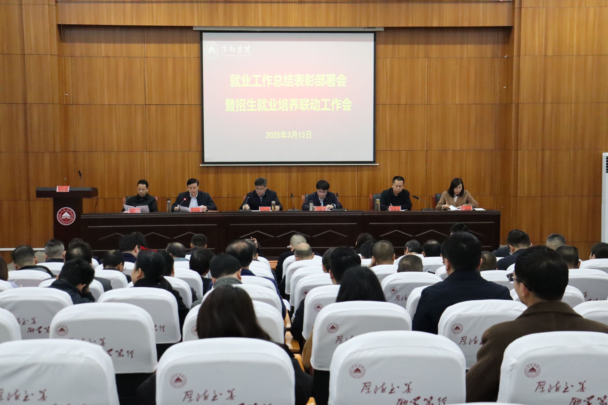 3月13日上午,我校在至善楼学术报告厅召开就业工作总结表彰部署会暨招生就业培养联动工作会。全体在家校领导出席会议。各二级学院党委书记、院长、就业干事、2025届毕业班辅导员以及招就处就业线全体人员参加会议。会议由党委委员、副校长刘培圣主持。